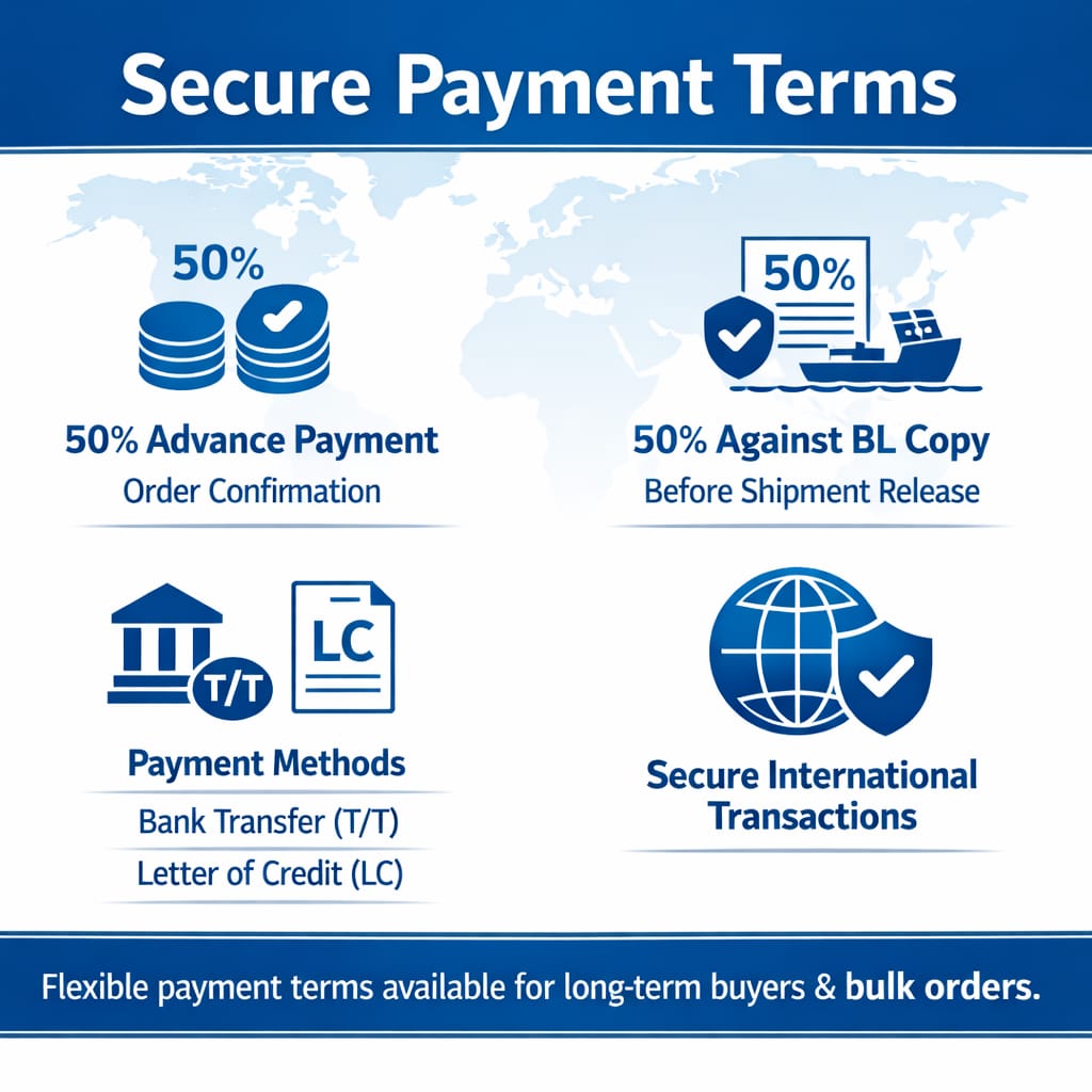 Flexible payment terms are available for long-term buyers and bulk orders.